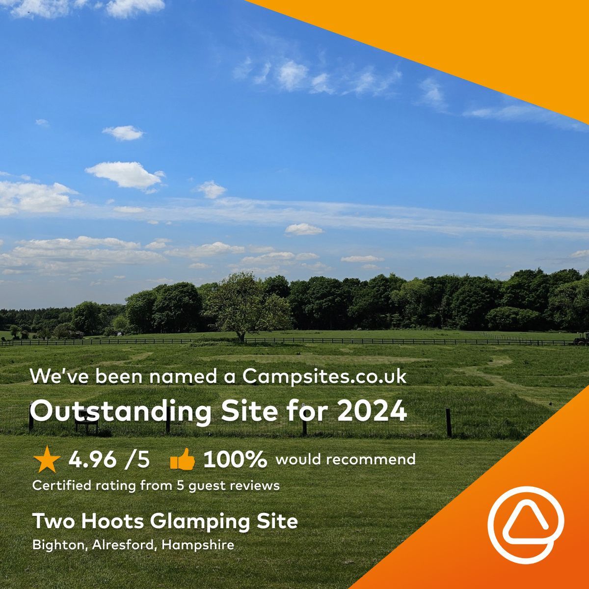 We were delighted to have been included on 2024’s list of the UK's 150 Outstanding Sites by Campsites
